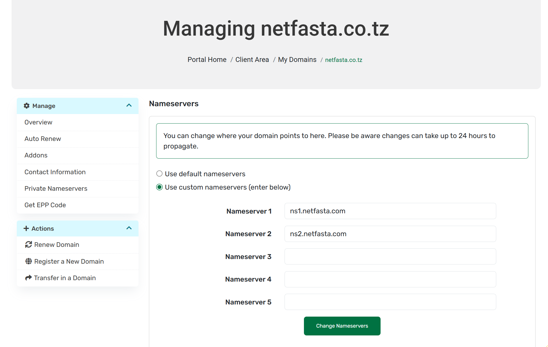 All newly registered domains at Netfasta are automatically assigned these nameservers.
